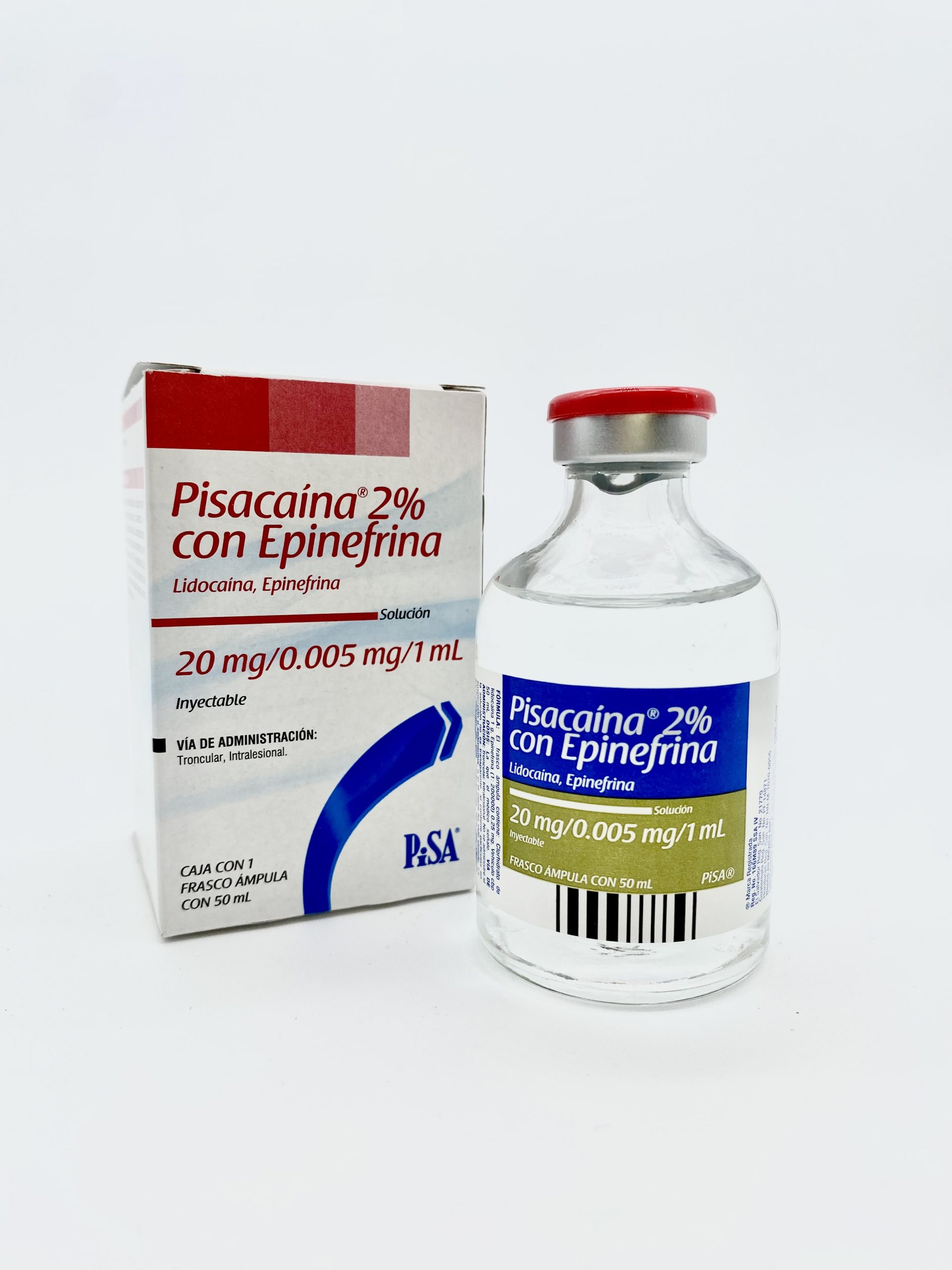 Caja con un frasco de 50 ml. Lidocaína 2% con epinefrina. 20 mg / 0.005 mg / 1 ml. Solución inyectable.