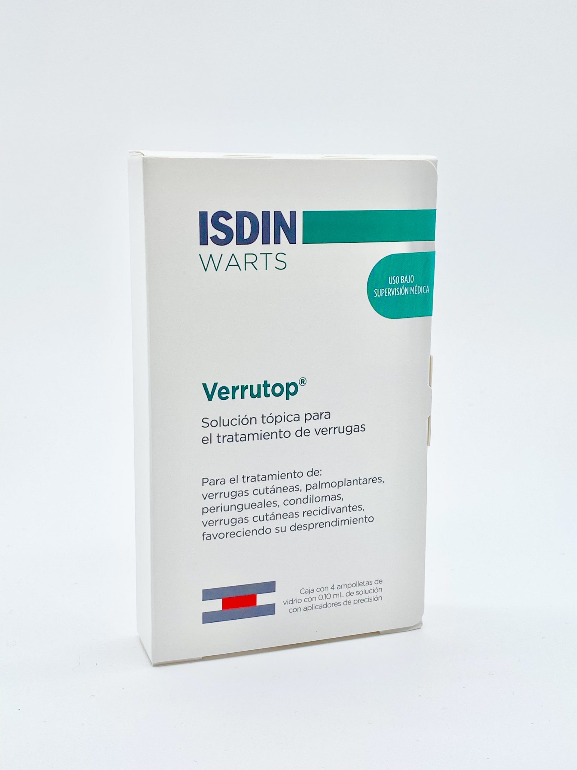 Verrutop es una solución tópica de uso profesional para el tratamiento de verrugas difíciles que ofrece una efectividad superior con pocas aplicaciones. Indoloro*, eficaz y preciso. Marca: ISDIN. Con Nitrizinc Complex:
